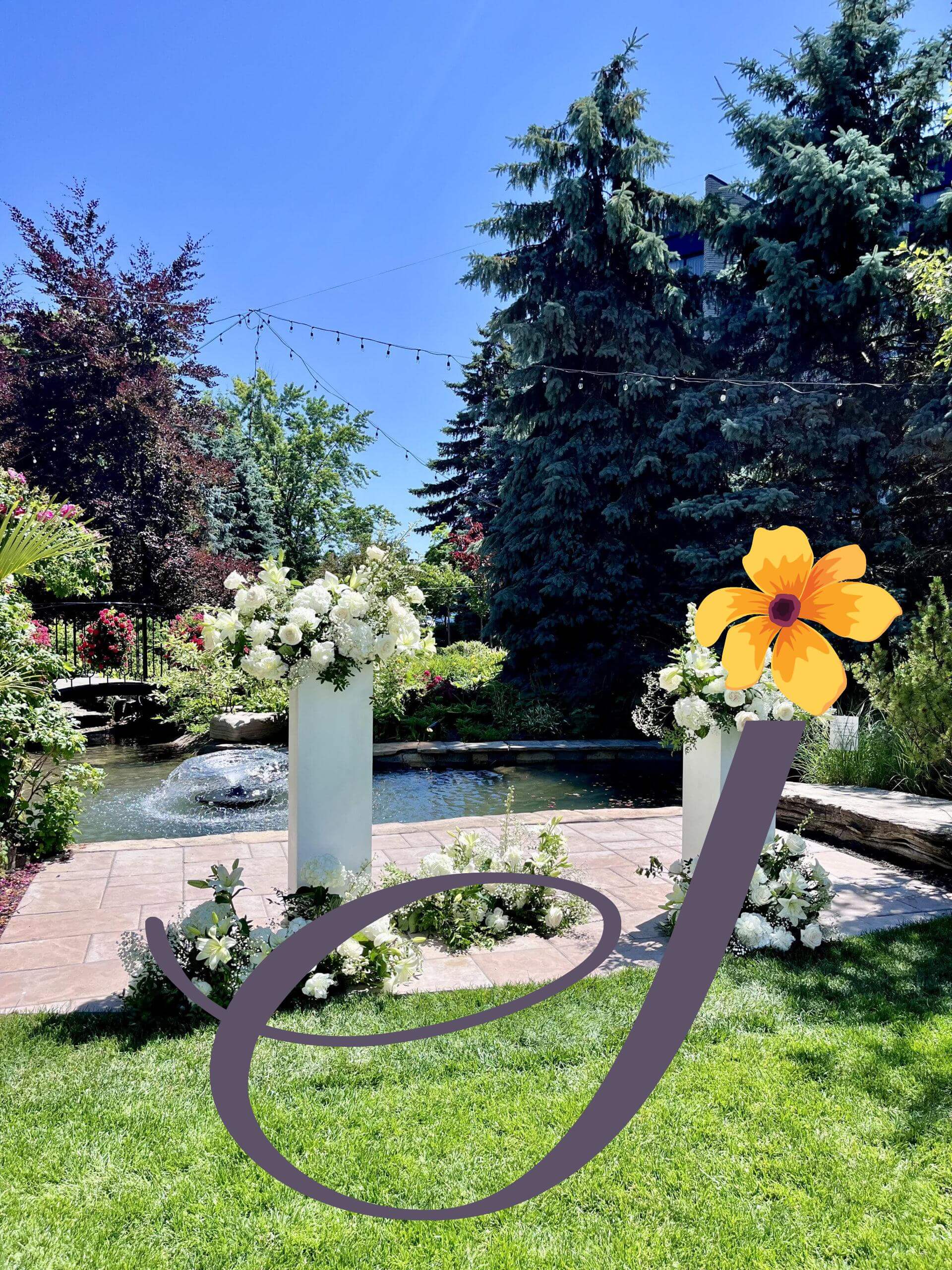 White wooden rectangular pedestals. Perfect for your ceremony aisle entrance, head table, or sweetheart table decor. Available in 2 sizes (Large and Medium). Silk flowers, large vases, and extra decor are available upon request at an additional cost.